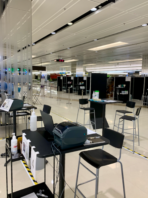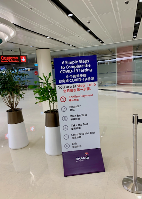 Upon arrival in the island city-state, you go through the normal process, going through immigration and picking up luggage. Prior to the final customs check, passengers are diverted to two new stations: the prepaid RT-PCR swab test and the allocation and transportation to the ‘Stay at Home’ hotel.