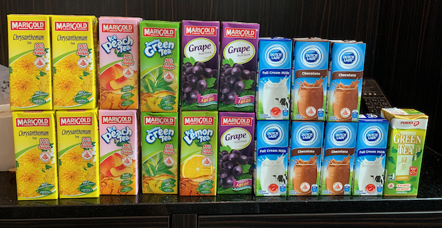 I tried to avoid sugary drinks, so I ended up with quite a collection of tetra boxes of juices which I took with me, to the delight of my niece whom I visited, and later stayed with.