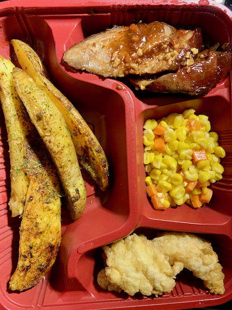 The meals were substantial. They included meats, vegetables, fruits, dessert, and juice boxes, wrapped in a single plastic bag. I was never hungry, though once or twice, I did order through Grabfood, which is allowed only as long as it is paid online. The rider then delivers to the lobby, and the hotel staff, in turn, places it on the stool outside my door.