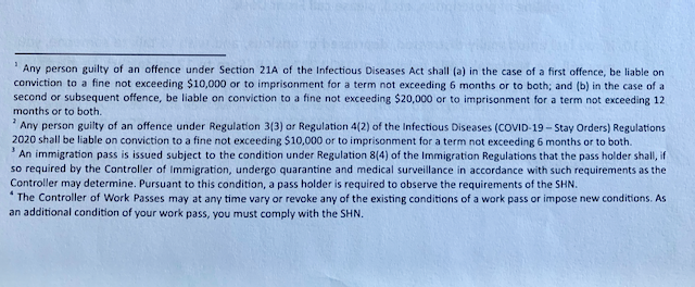 But if I really wanted to violate the quarantine, there are steep consequences. Under the Infectious Disease Act of Singapore, violating quarantine is punishable by a fine between SGD 10,000 to SGD 20,000 (approx. PhP 360,000 to PhP 722,000), and/or imprisonment from six months to one year, and immediate cancellation of student or work visas and potential blacklisting for future visits.