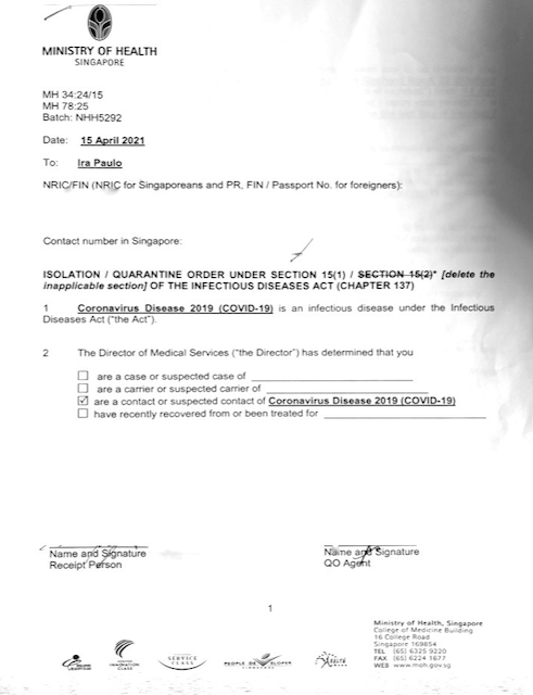I had my doubts as to the accuracy of my colleague’s test results. While we had been in close proximity for days, we all went through a quarantine upon arrival, and we all passed our swab tests. We maintained strict distancing and we always wore masks. At the time, Singapore’s community cases were less than those you could count with one hand, with many days having zero community cases.