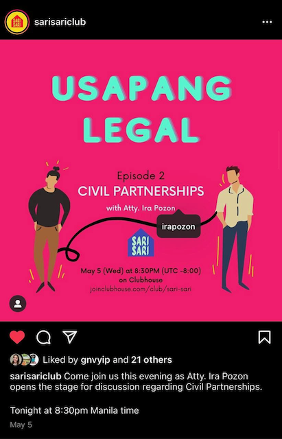 I met awesome people, joined great clubs like Sari Sari and Baranggay Jologs, and I was even invited to host rooms discussing legal issues of the day. I’ve made many new friends and connections, chatted with old friends on Clubhouse.
