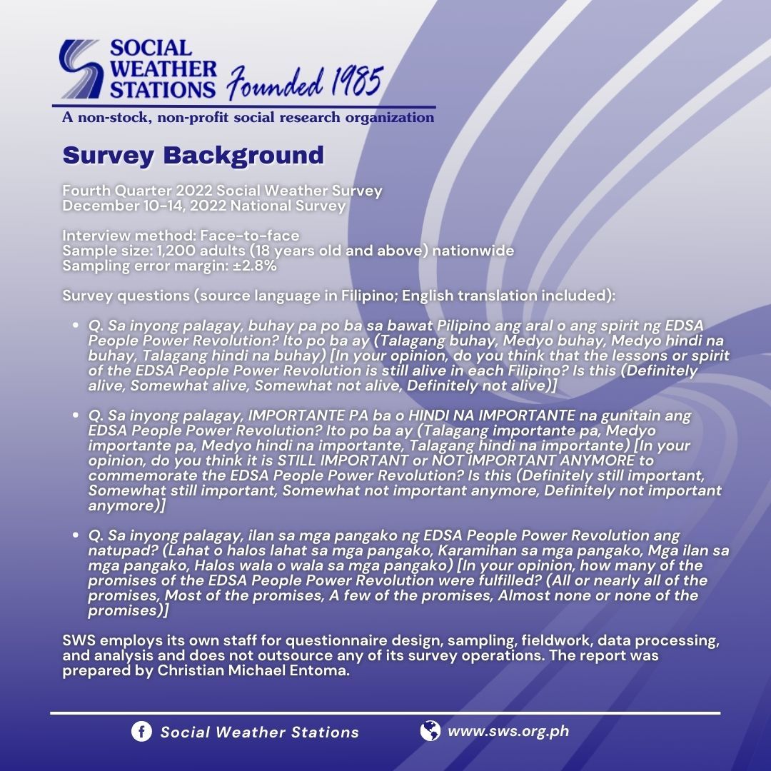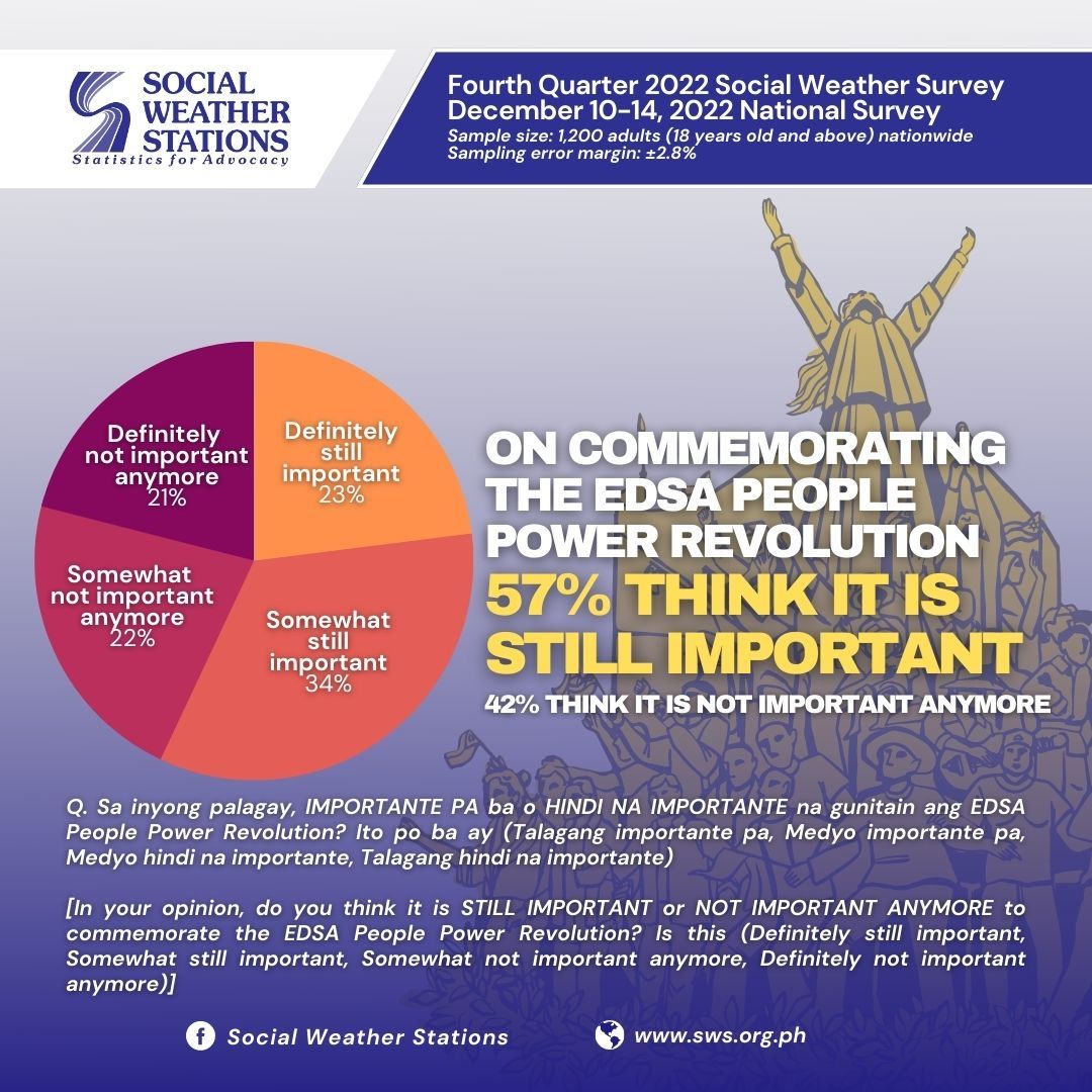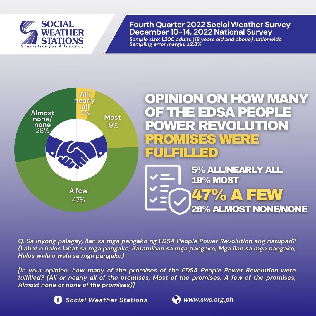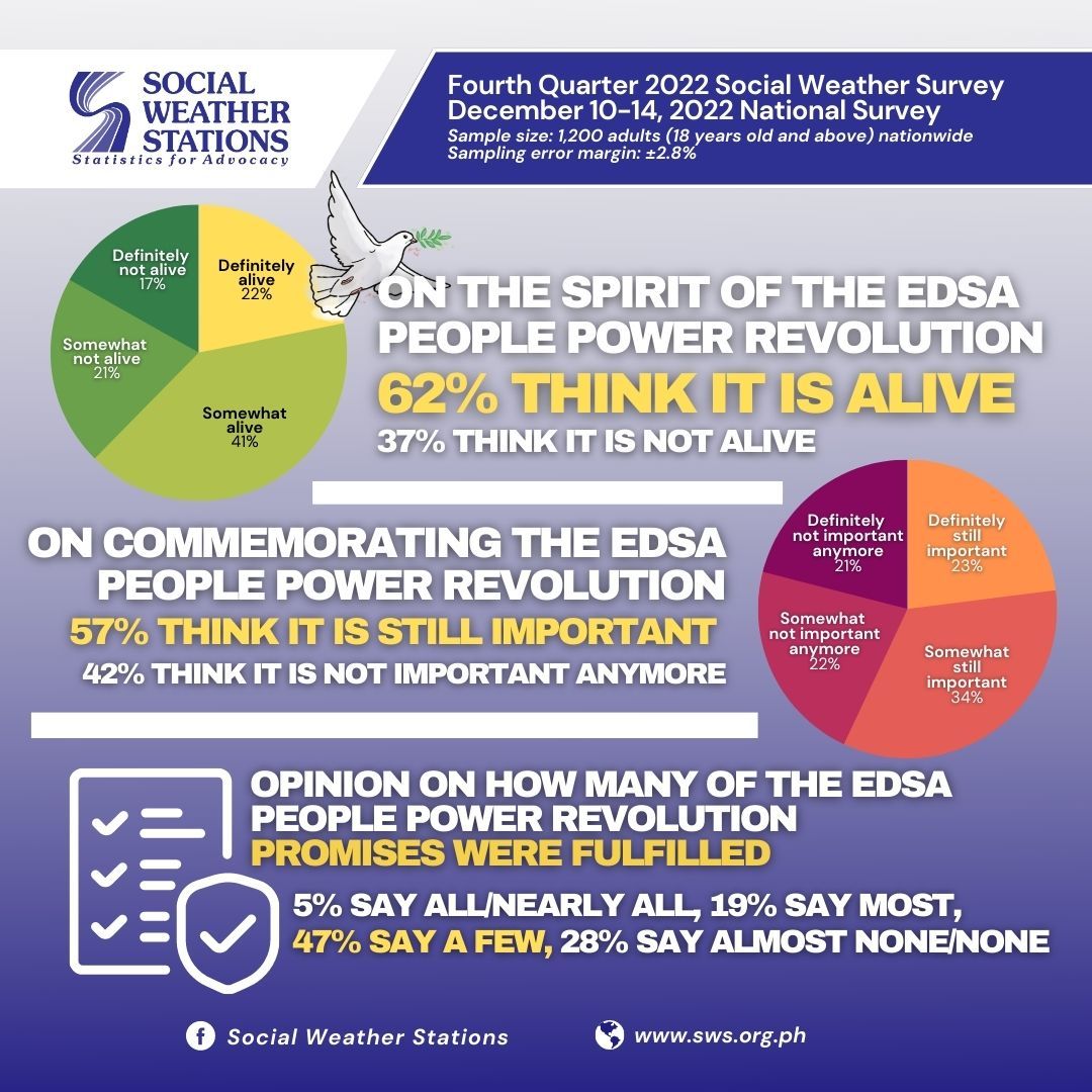 62% of Filipinos Still Believe in EDSA, but Only 5% Say Promises were Delivered