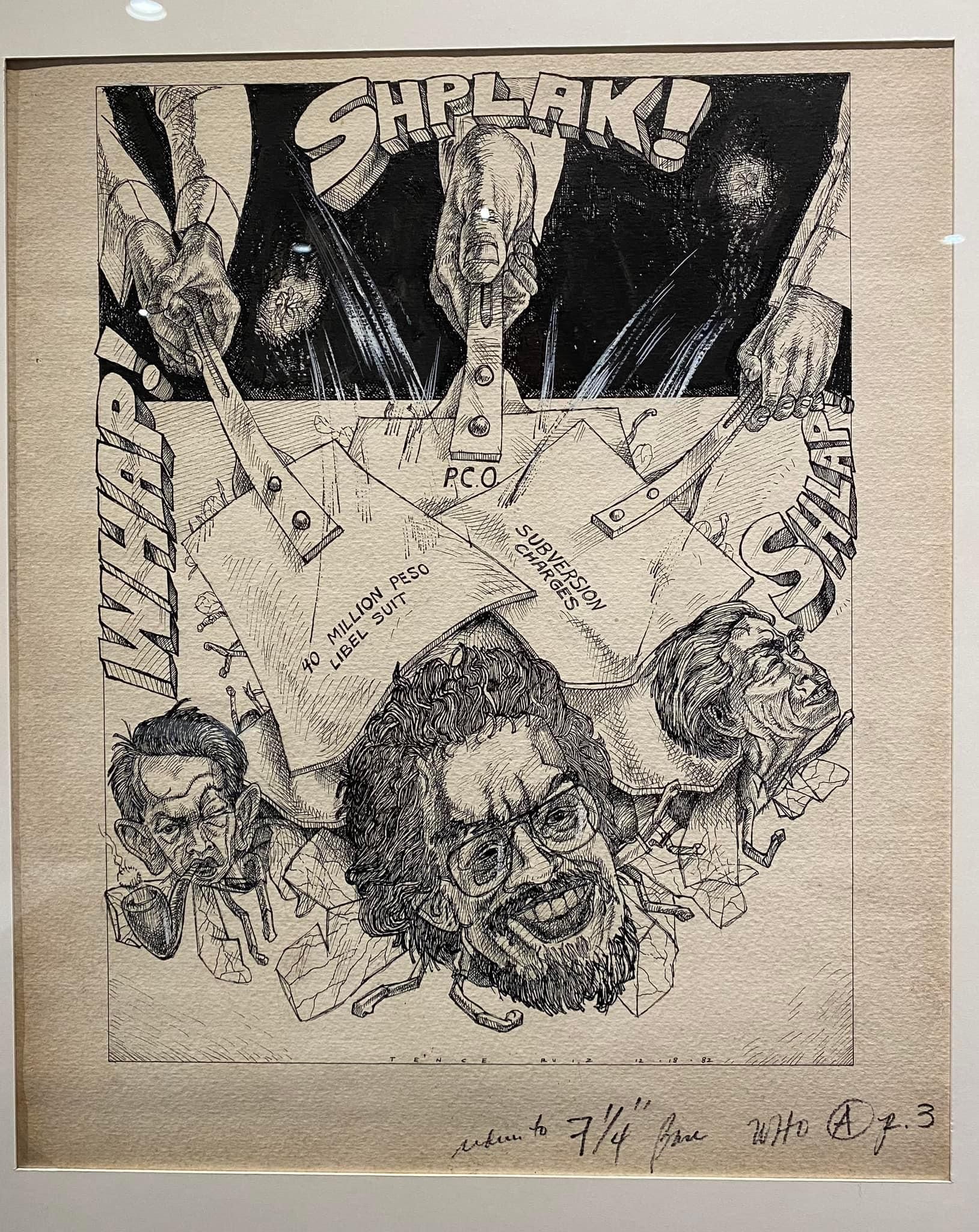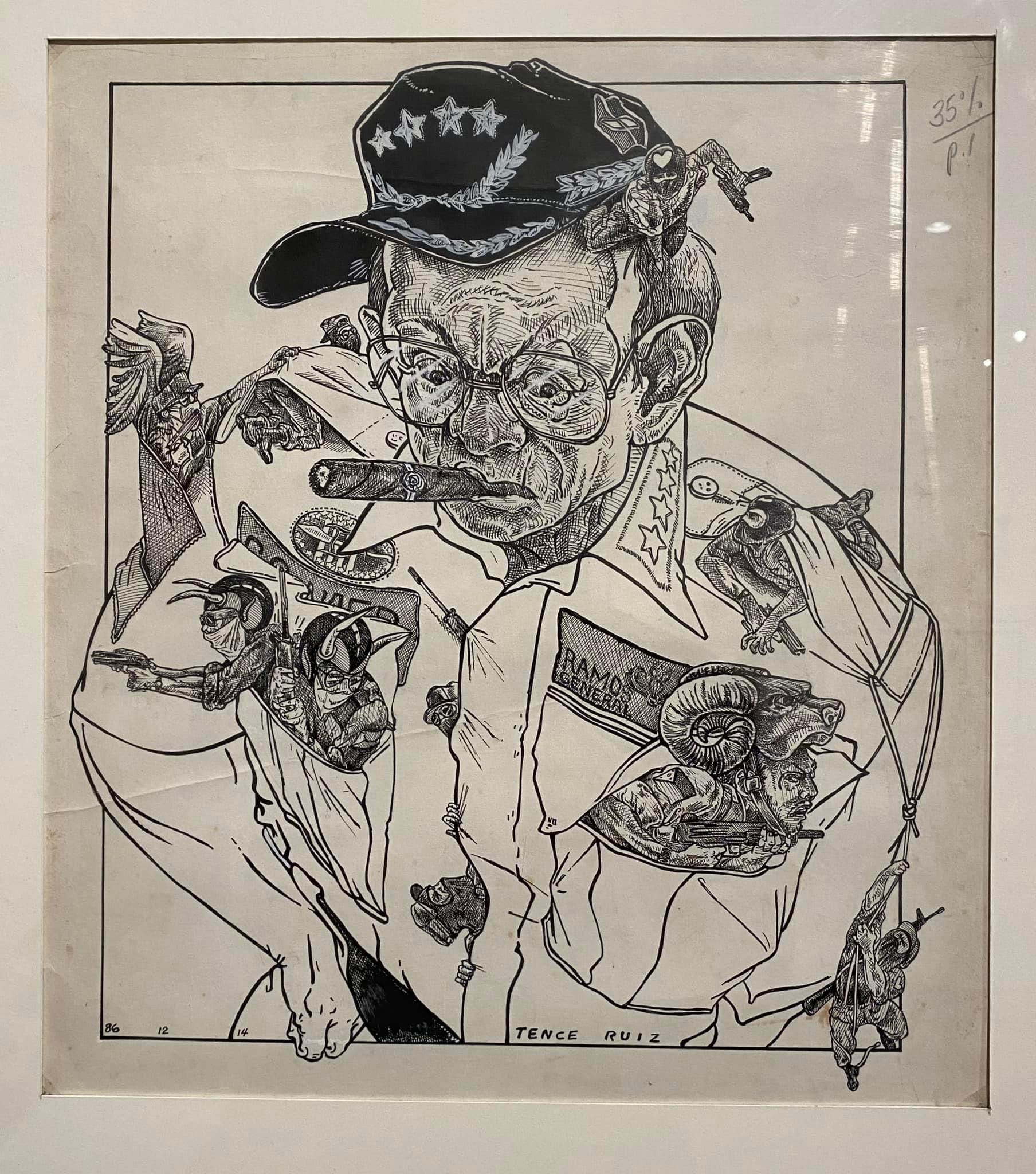 On display along with some of his iconic paintings and sculptures are editorial cartoons from his stint in several local and international publications. Here is Ruiz as visual editorialist, leaning in on the event of the moment, capturing in pen and ink the daily making or unmaking of history in a hurry, with his distinct strokes and thought-provoking, tragic-comic commentary.