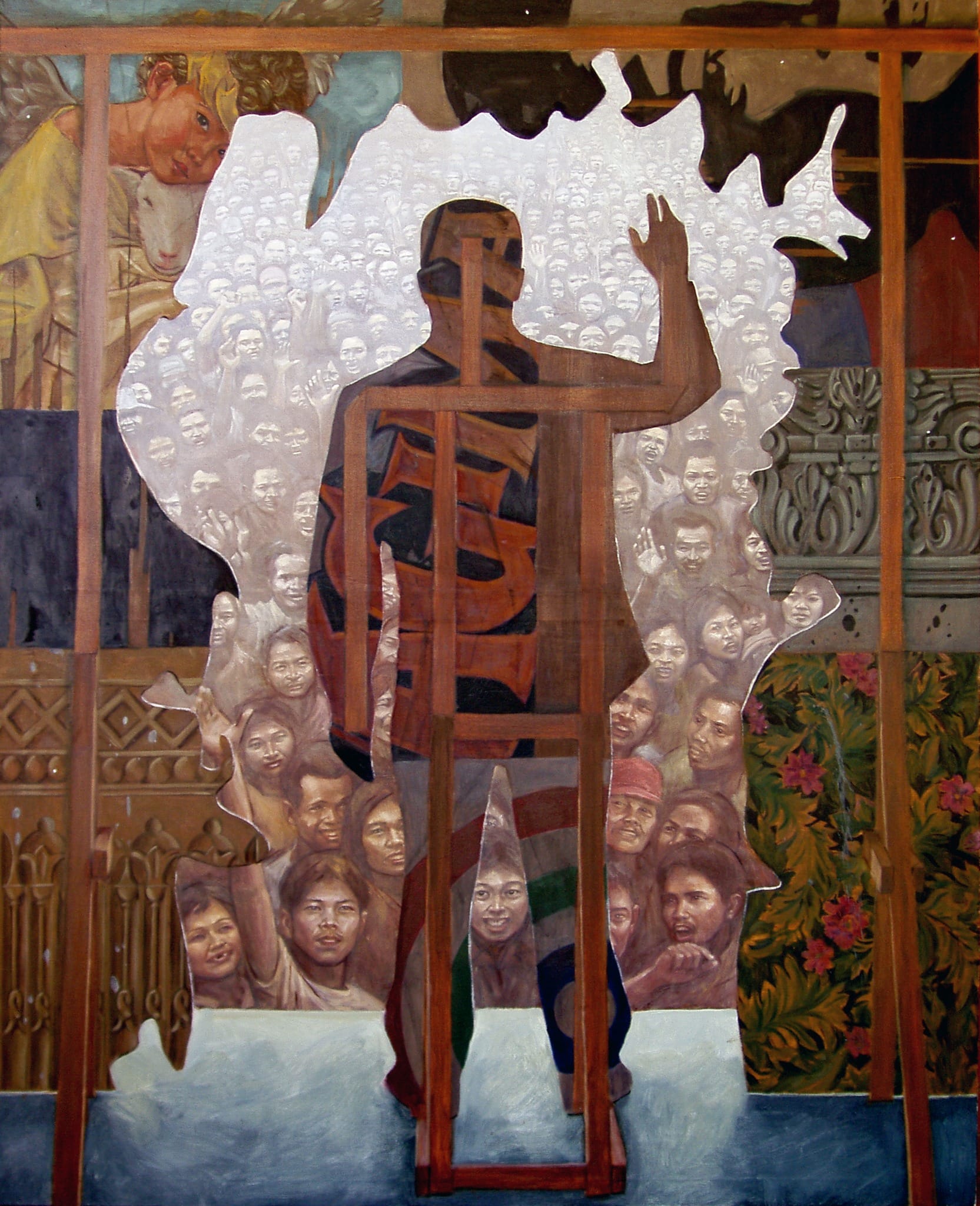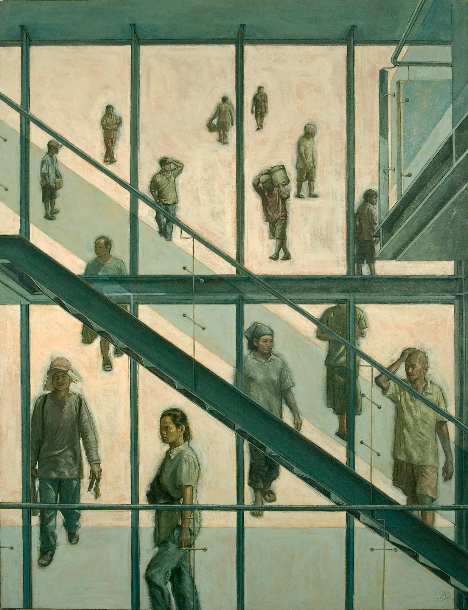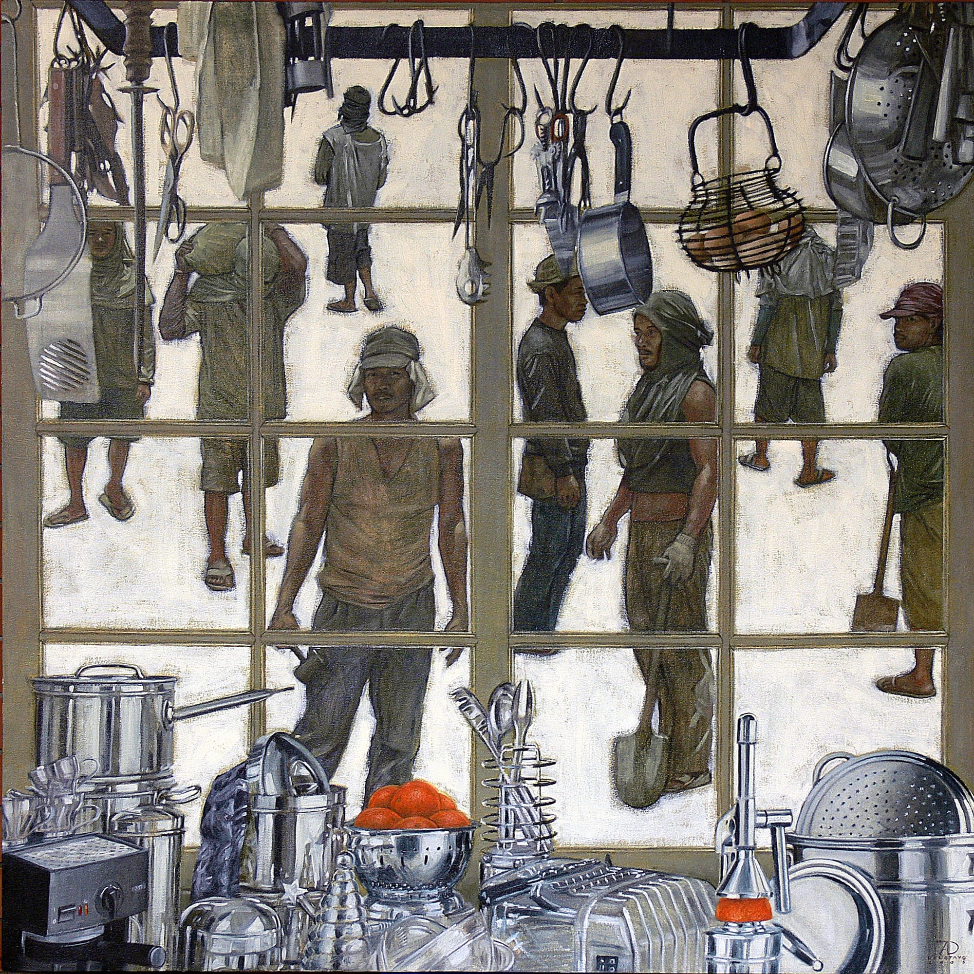 Delotavo does not necessarily reject the progress and beauty that these Art Deco and Neo Classic landmarks have brought to his home province. He does glaringly remark, though, that the mechanisms and social systems needed to distribute these gifts of the colonizers must have fallen short, are not up to speed to the point that by juxtaposing their grandeur with the unflinching, and longstanding plainness of the citizens that he sets beside them, he creates works that manifest, nay enunciate, the ironic inequity.