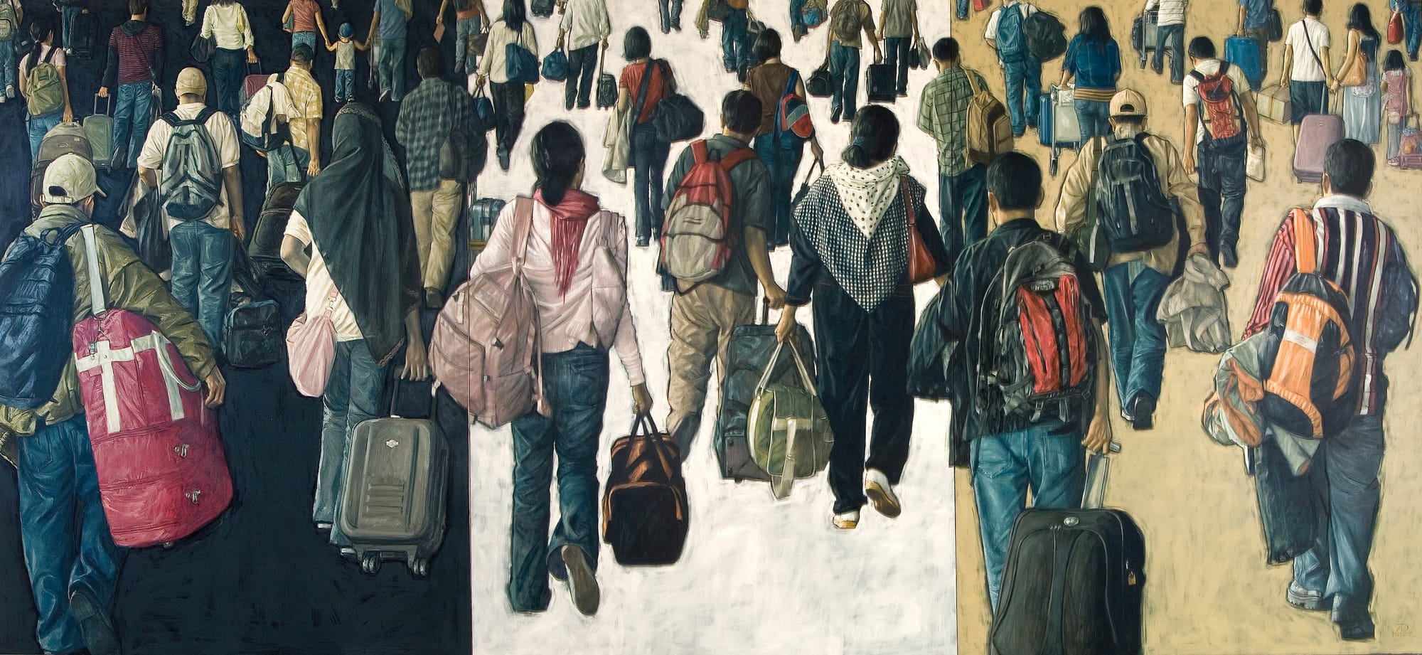 Art, charged by and in the observation of contradictions in social settings has come a long way from its pioneer motifs thrown up by Bolshevism, Socialist Realism, Yenan Forum prescriptions and even North Korean chosun. These genres served as formative templates for pictures that could confront issues. But we have in the last 40 years or so absorbed multidirectional currents of formal strategy, wit, poetry, enigma, craft, mystery, quandary and invention so that, after formalist logic arrived at one of its teleological destinations in the reductions of Malevich, the formal per se seemed bereft of use without context. And while context in human behavior might be seen as adaptive yet cyclical, it varied, prospered, morphed as technologies were discovered.