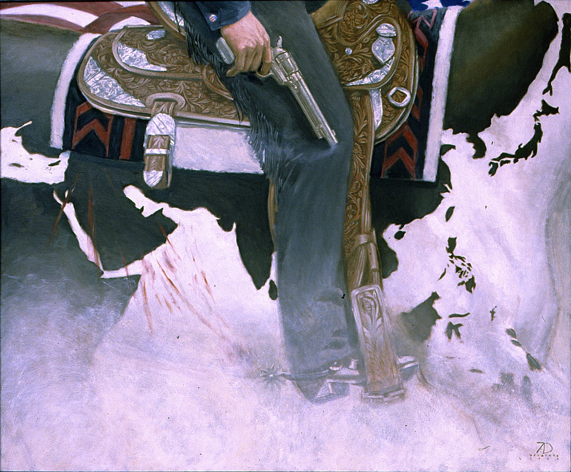 Delotavo’s juxtapositions have been treading these tainted waters for so, so long, hoping not to be exhausted, hoping not to succumb to drowning in their murky inertia or lapse into convenient ornamentalism with just enough of a redolence of progressive rhetoric, however we construe that in 2023.