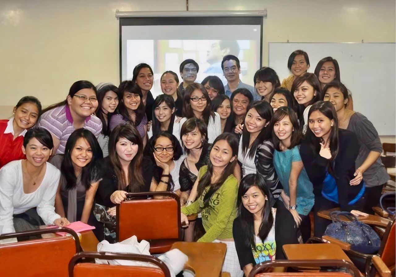 TEACHING is an advocacy for Koyang. 1. After finals exam photo of a class in St. Scholastica's College; 2. At the lobby of the college; 3. Students doing their practicum in Estima.