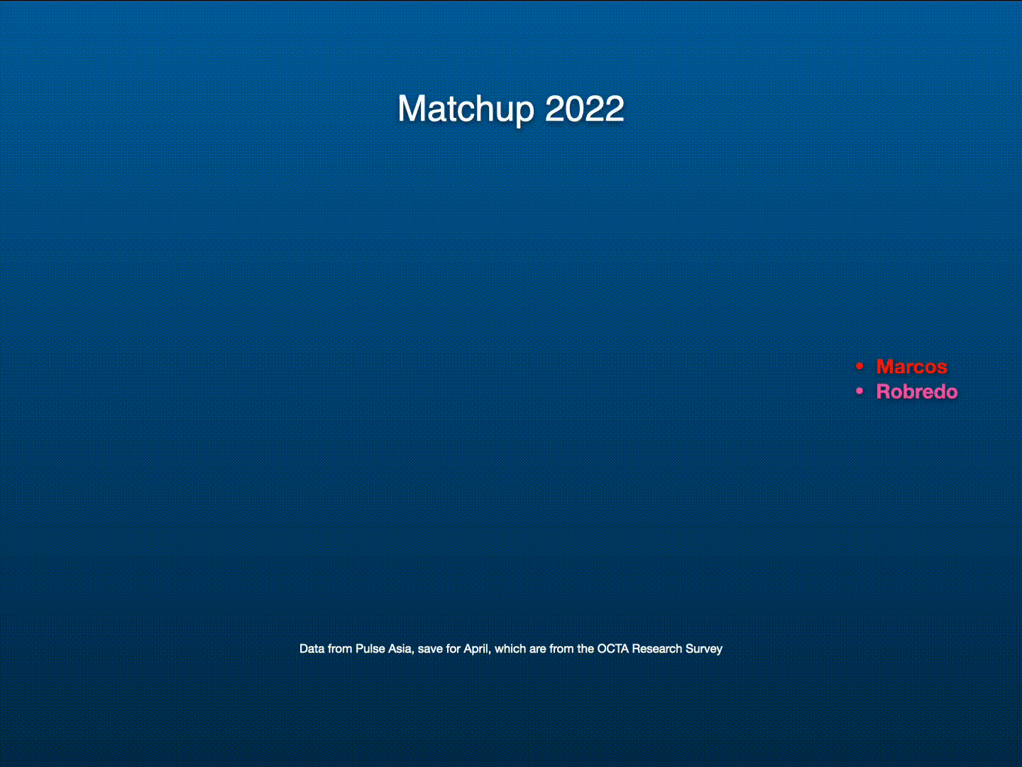 But here’s the reality check. In April 2010, we were already nipping on Roxas’ heels. Based on the latest survey conducted by OCTA Research from April 2-6, Marcos Jr. is still leading the race at 55 per cent, with Robredo at 22 per cent.