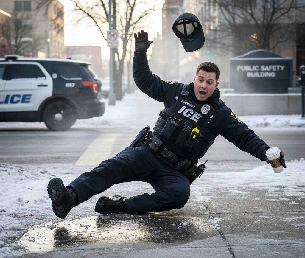 To get back to #iceonice and men falling headlong: the millions of people who share such images and videos know very well what ICE is doing. They know about the frightened children, the violence and the deaths. And yet, online, they find amusement against this backdrop. Perhaps, when faced with desperate political situations, we need moments of ridicule all the more — or, as in the aforementioned video, moments in which the mighty take a tumble.