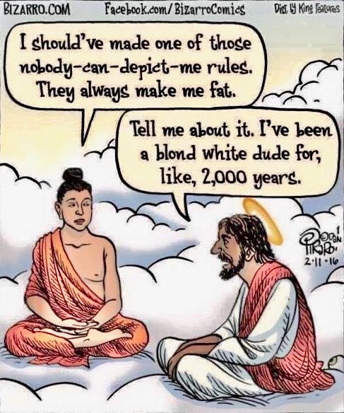 Strangely, Jesus's face is on paintings but not on celluloid.