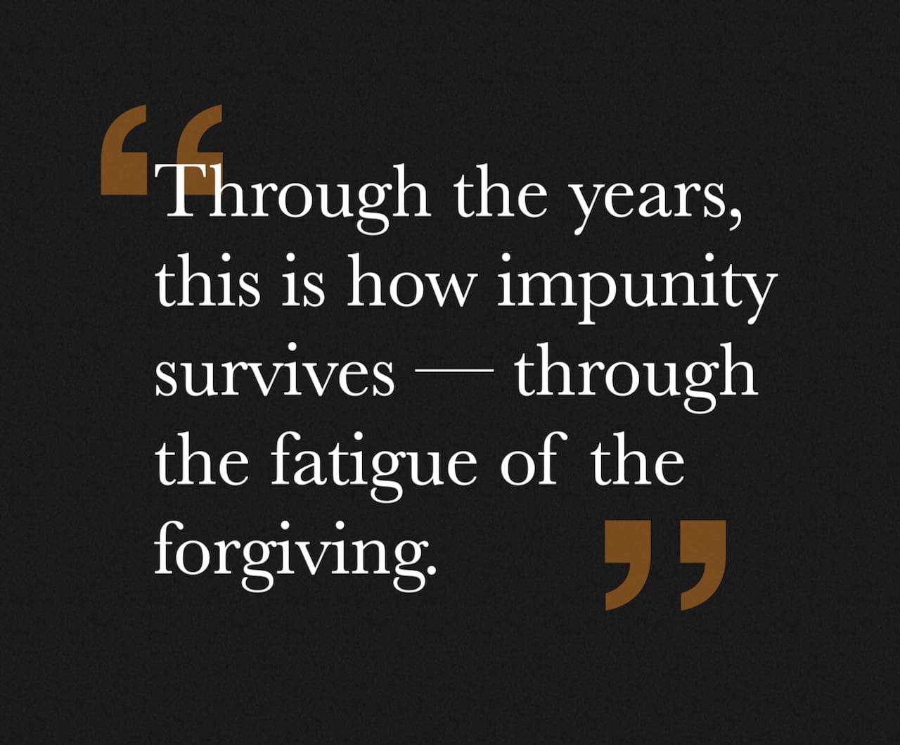 Through the decades, this is how impunity survives in the Philippines—not through force, but through the exhaustion of the forgiving.