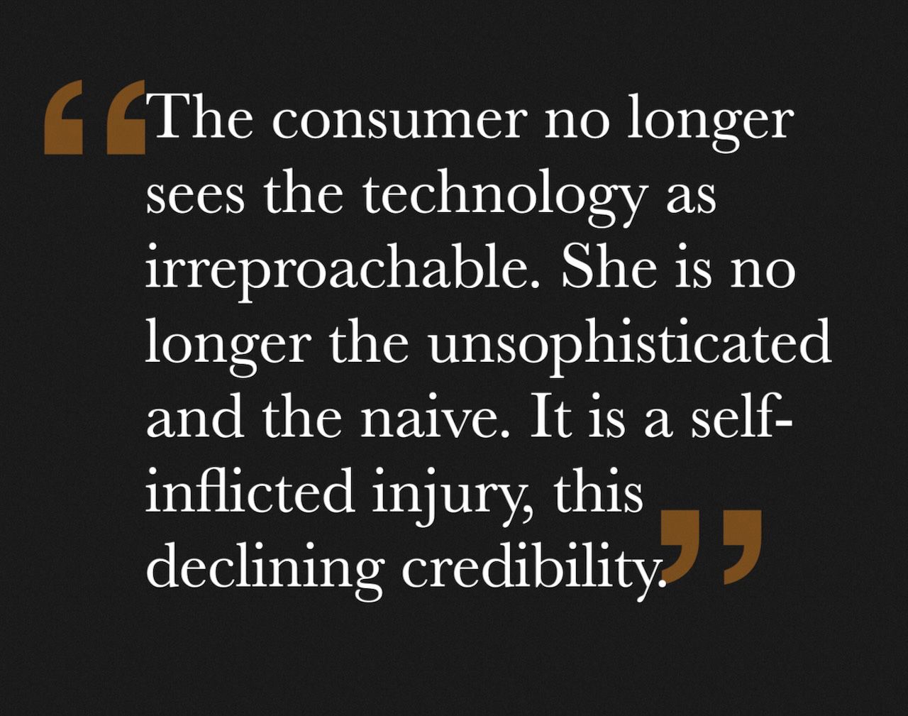 The consumer is jaded because we have abused the technology and impaired its credibility.