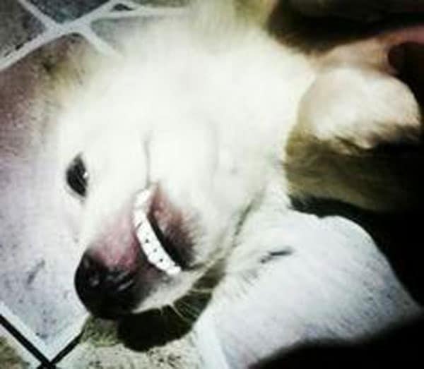 Dogs occasionally make smile-like facial expressions, yet they don’t actually smile as people do. Your dog could display specific behavior that give the impression he (or she) is smiling. When all of your dog’s teeth are visible, it’s usually a hint to back off. But not always. Take Milky’s case for instance.